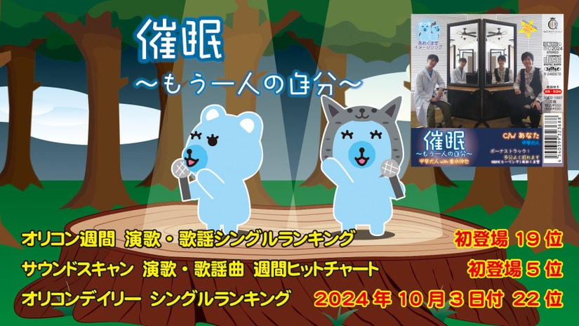 また、CDも本格的に予約がはじまり、通販サイト『Neowing』さんで『催眠~もう一人の自分~』が8/14の「演歌/歌謡曲」デイリーランキングで1位、J-Pop全体でも15位、「演歌/歌謡曲」ウィークリーでは4位、全体では144位になりました。ご予約してくださった方ありがとうございます。