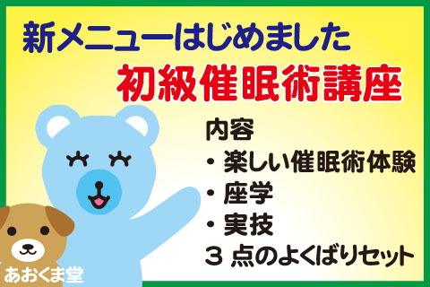 そんな【誰でもわかりやすい催眠(ヒュプノ)】を、あおくま堂にて、定期的に開催しています。